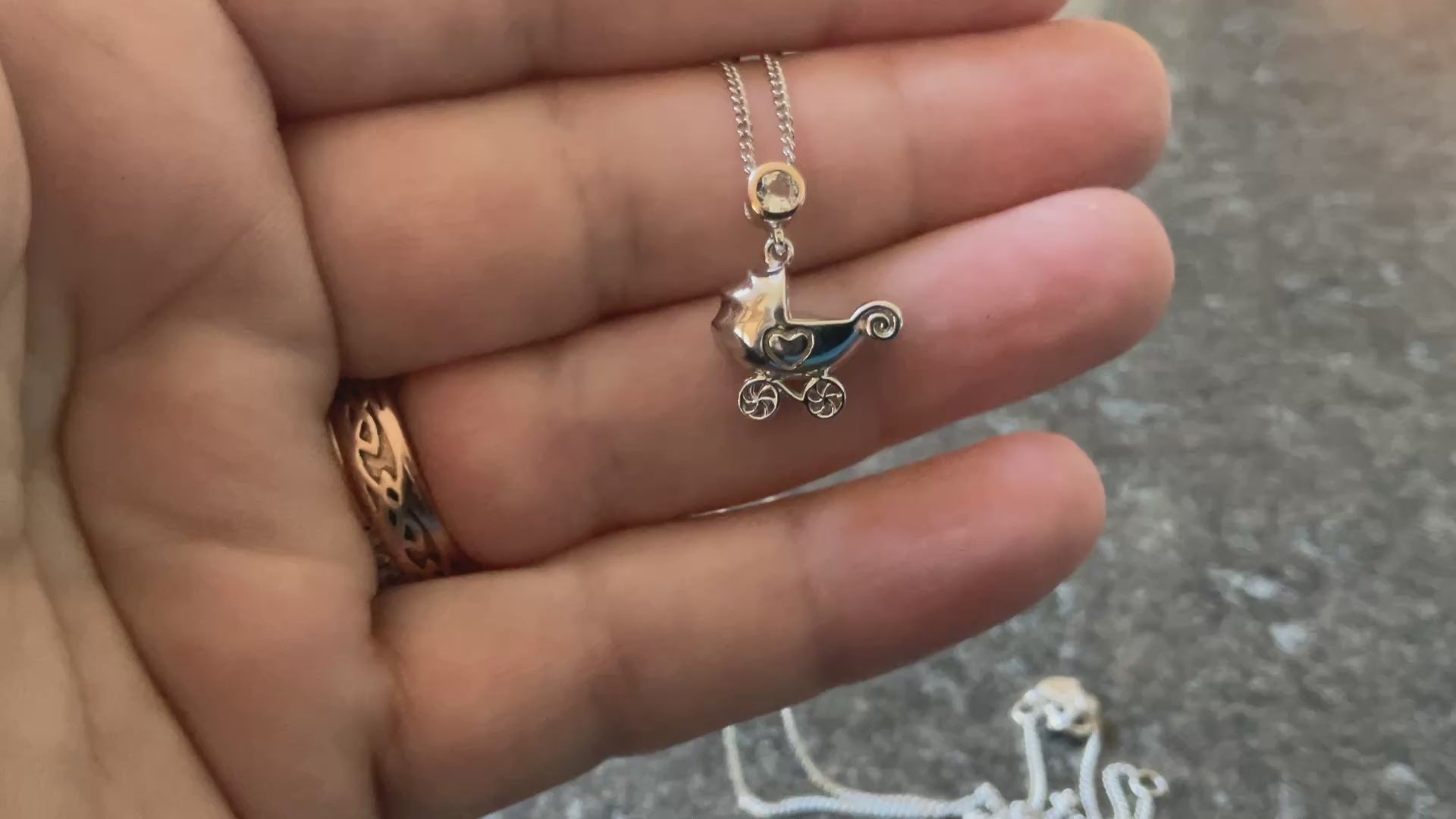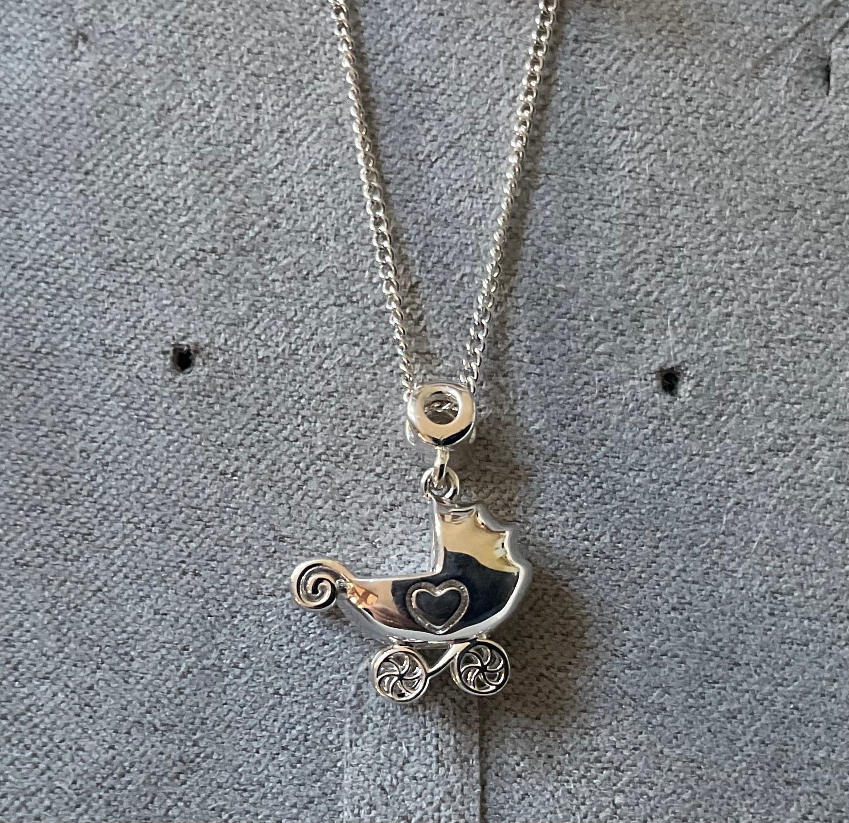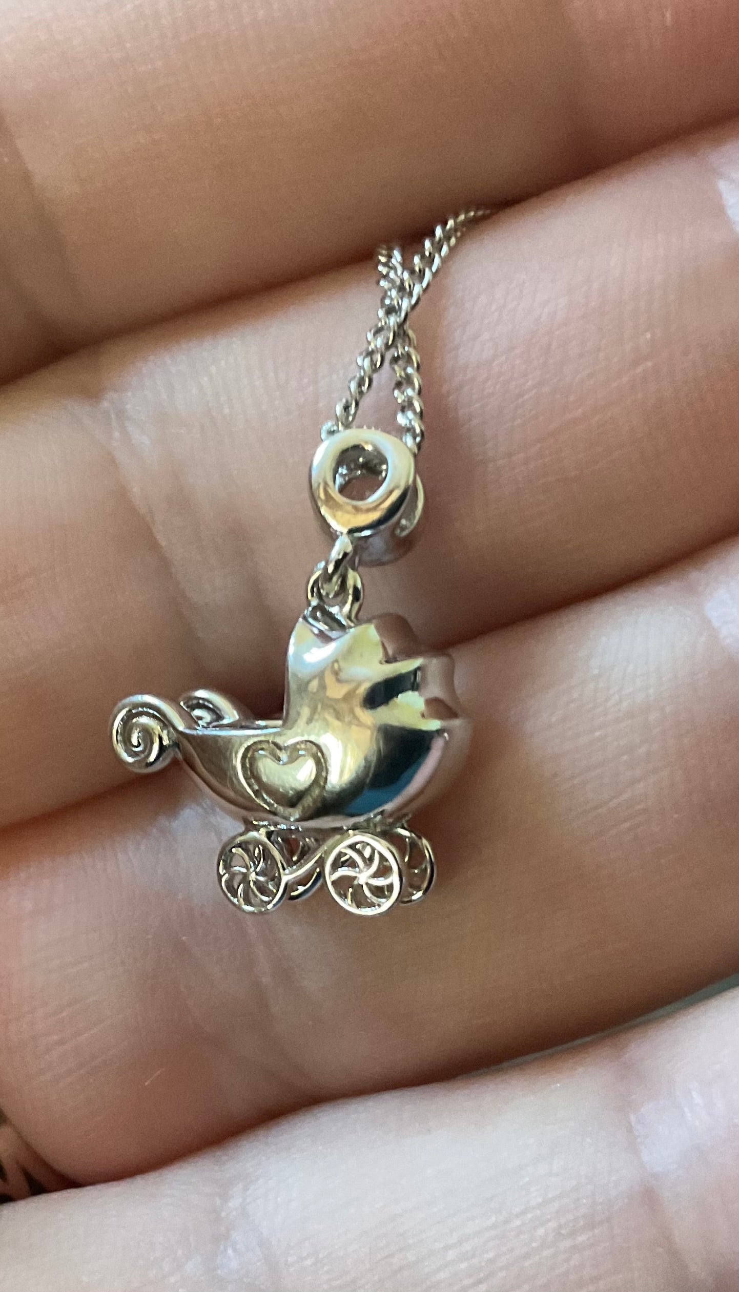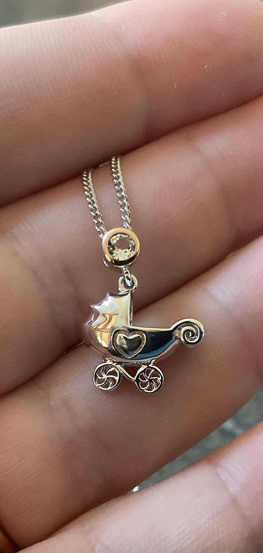 Rare Clogau Carriage Pram necklace topaz silver and rose gold 16-18”
