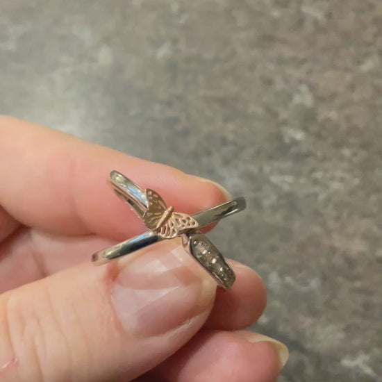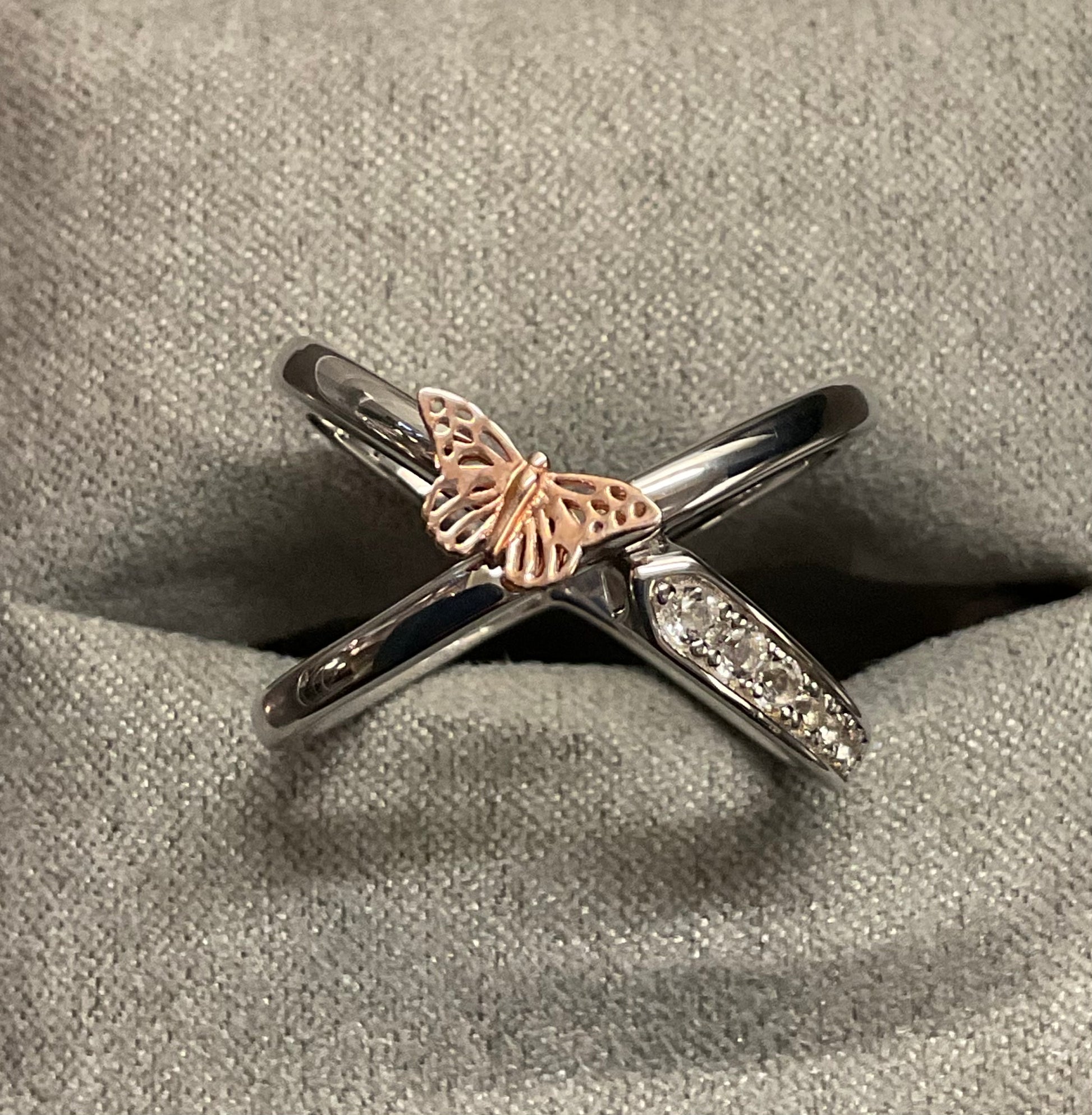 Rare Clogau White Topaz Butterfly crossover ring size O1/2-P in silver and rose gold