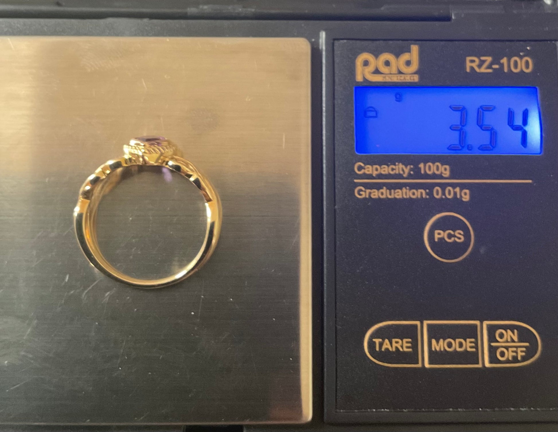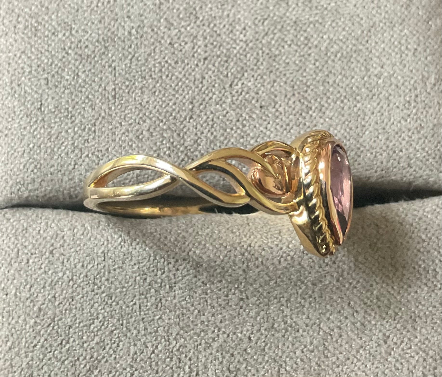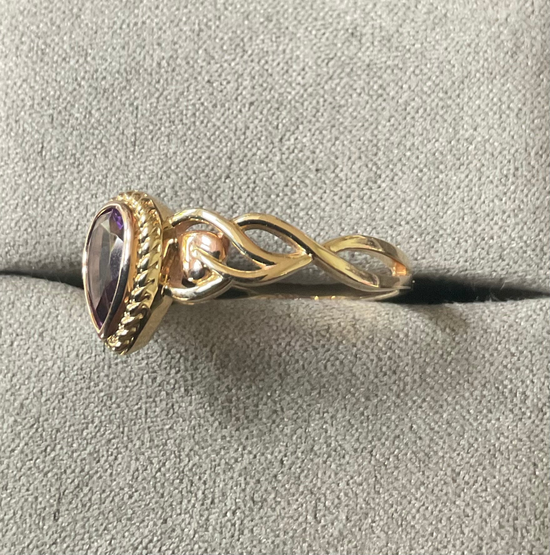 Royal Clogau 9ct Delphinium Amethyst ring size T in yellow and rose gold RRP £600