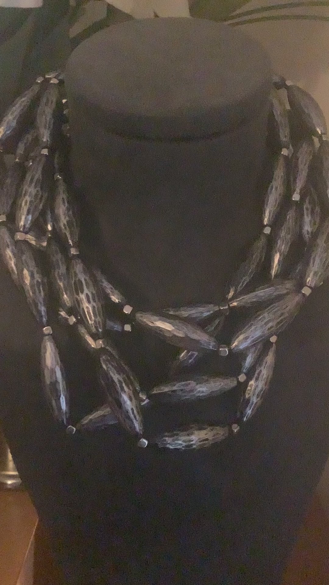 Silver and black multi strand chunky lozenge barrel bead necklace 18-21”