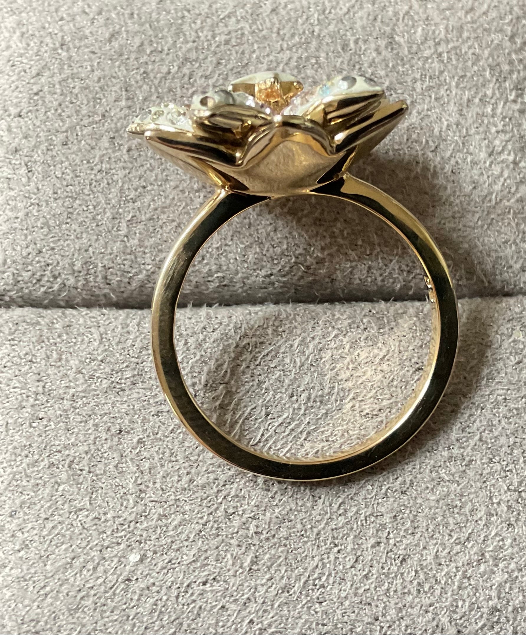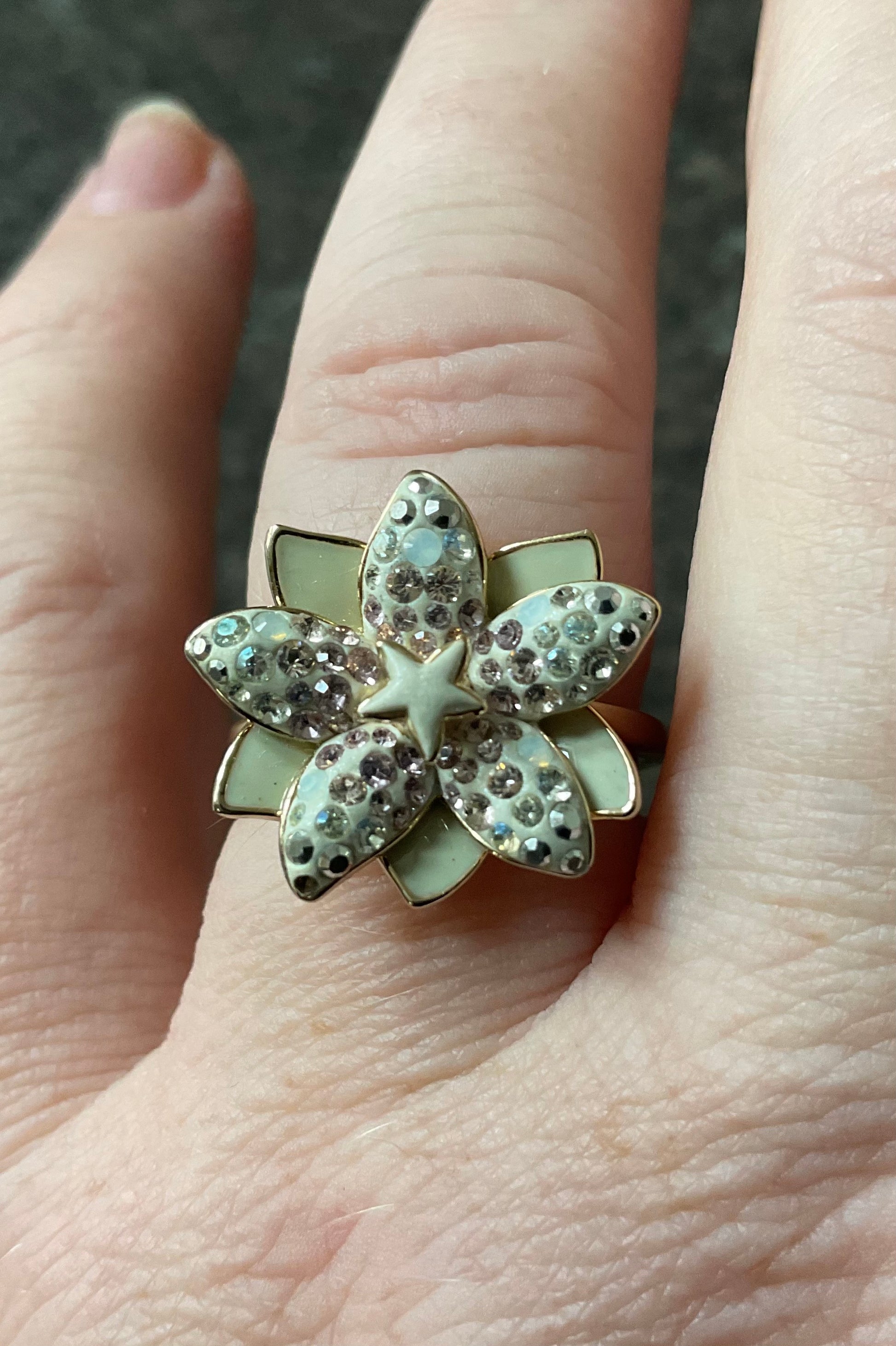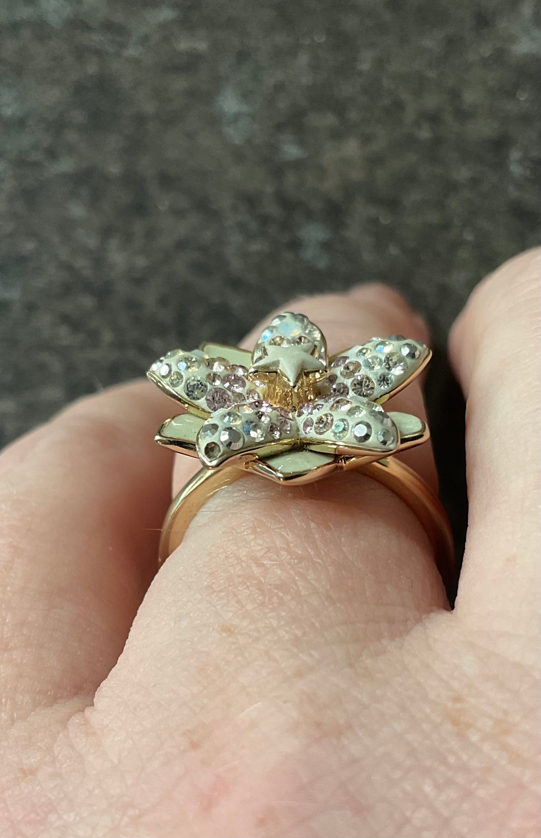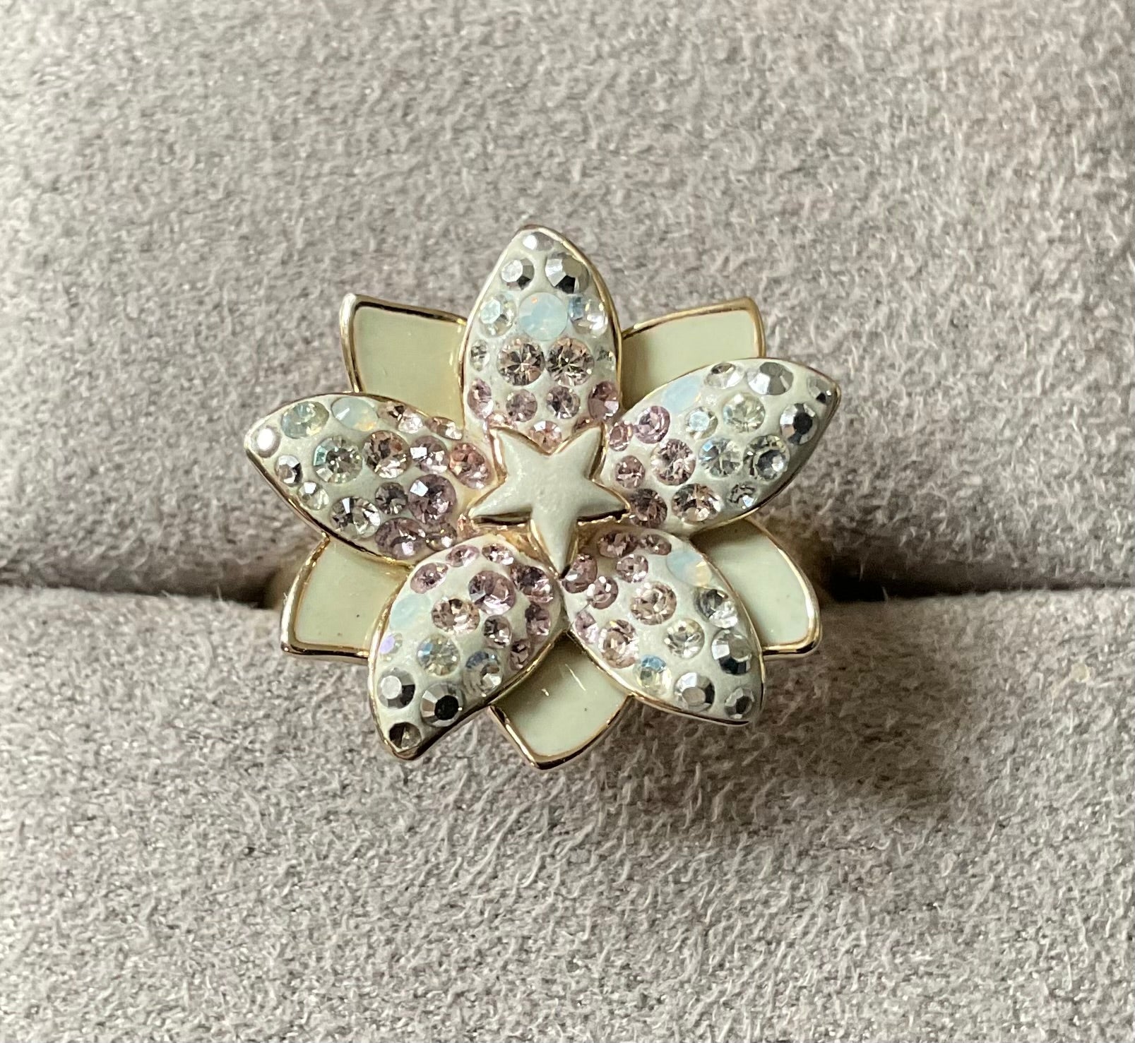 Swarovski LOUELLA flower ring gold tone size P1/2 crystal and enamel (1 stone missing)