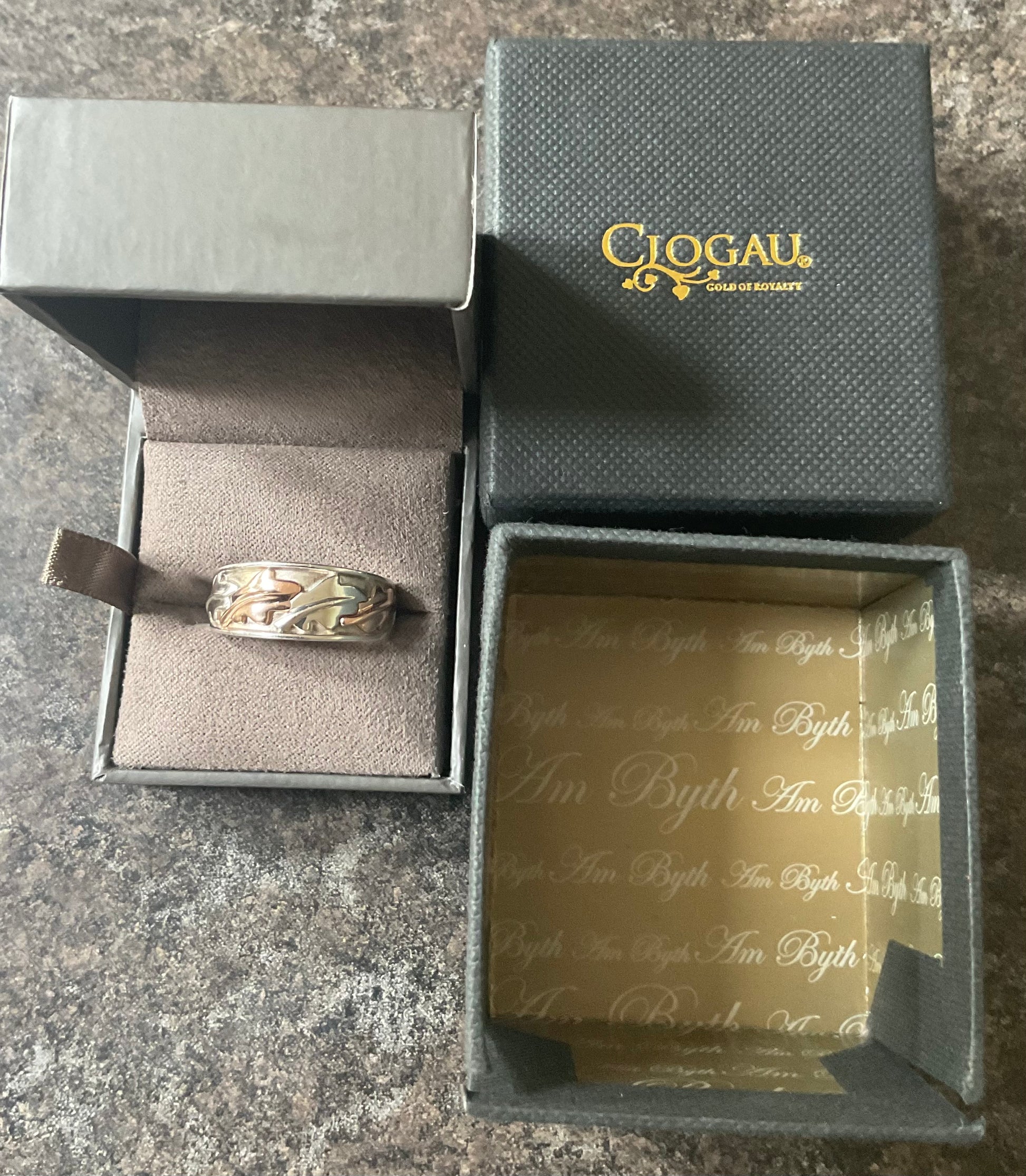 Unisex Clogau Royal Oak wide inlay band ring size R silver and rose gold 6.78g