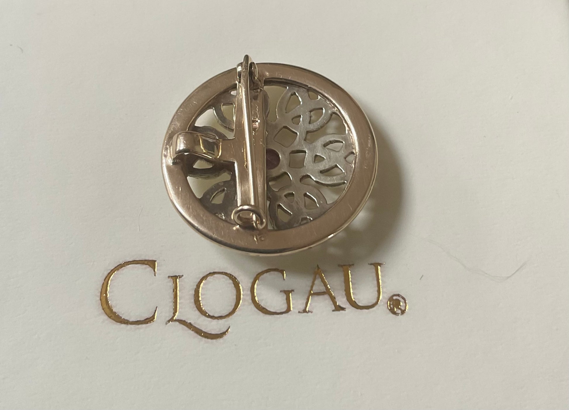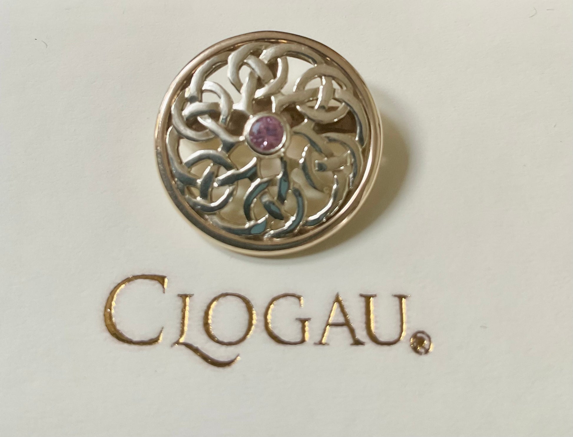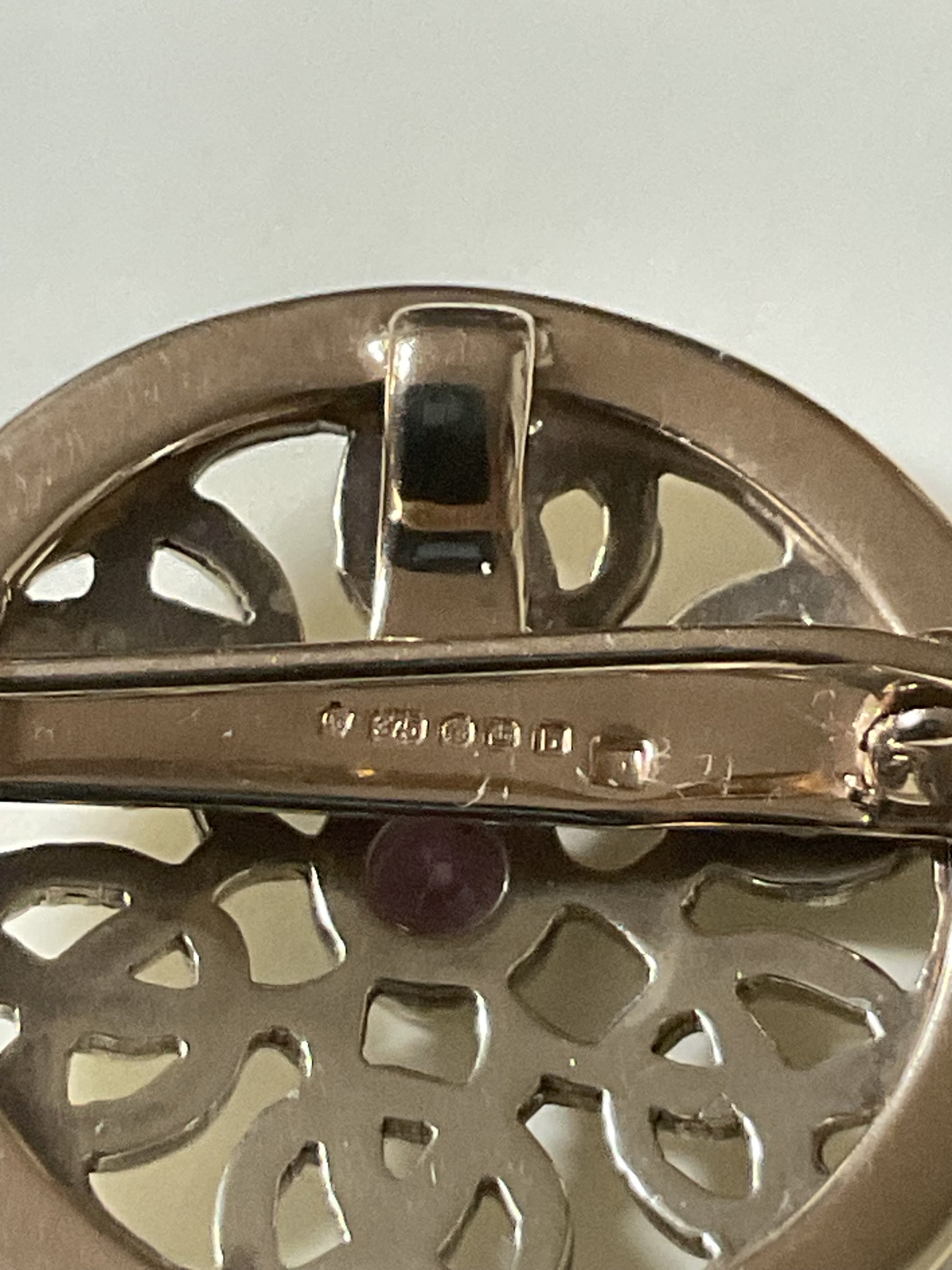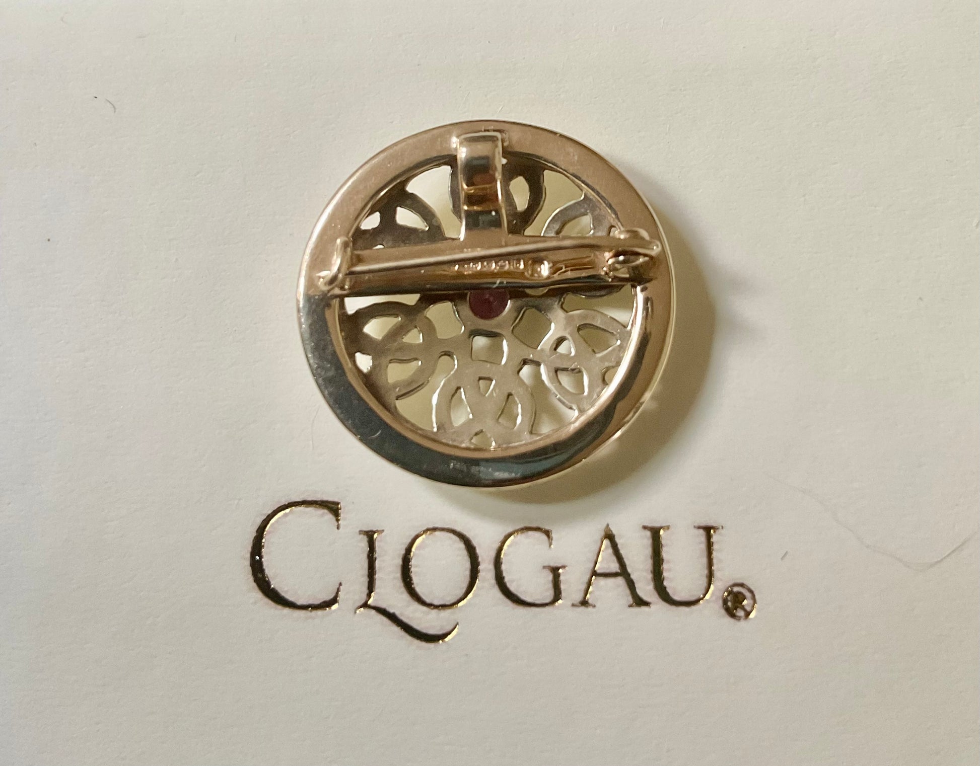 Vintage Rare Clogau 9ct Pink Sapphire Celtic Knot Moon gold small Brooch Pendant in white and yellow gold