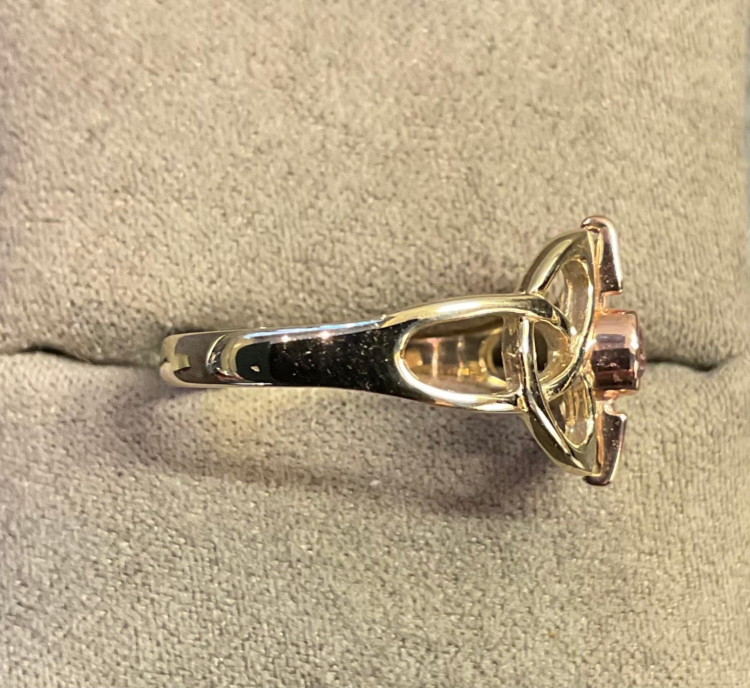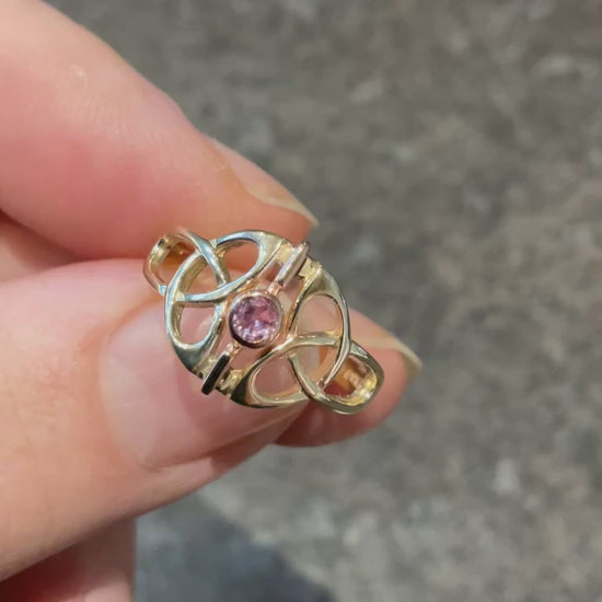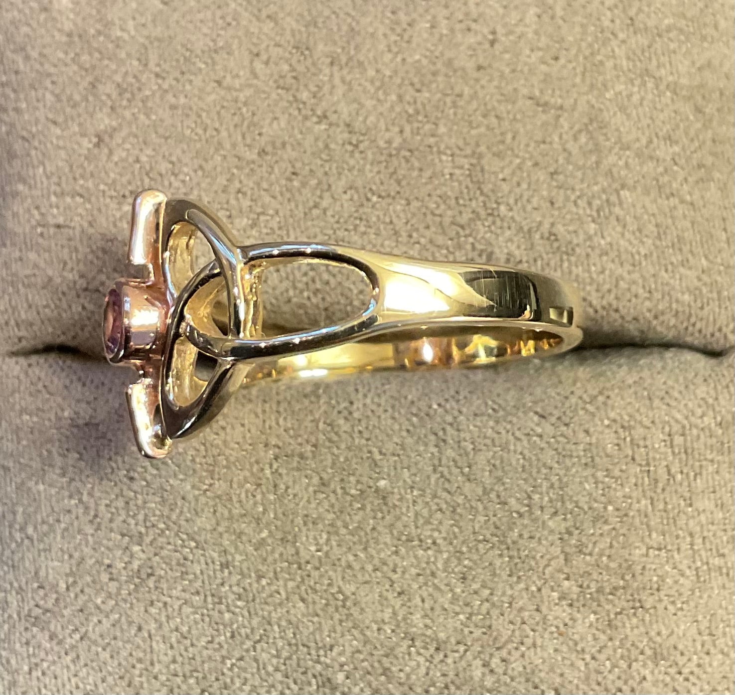 Vintage Clogau 9ct Pink Sapphire Celtic knot Unisex ring size O in yellow and rose gold