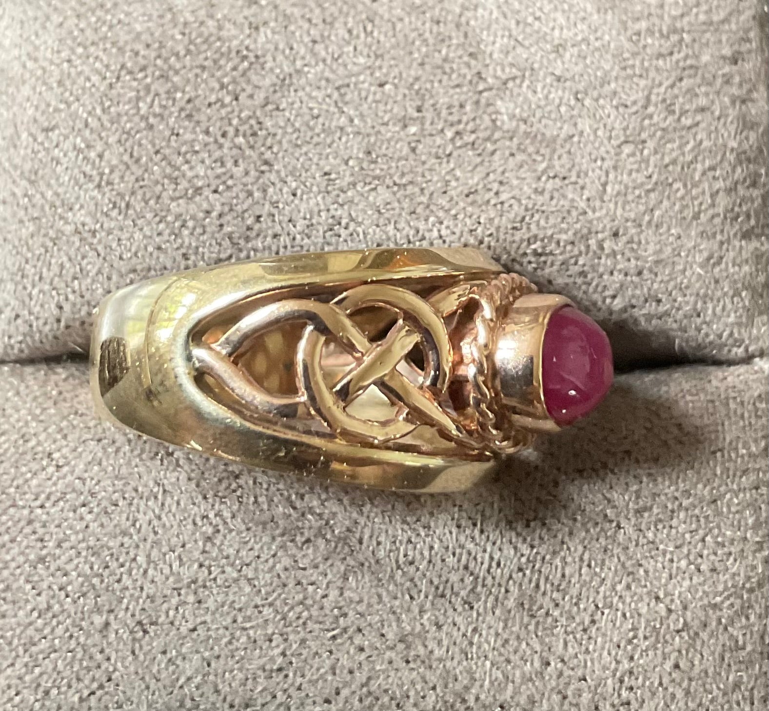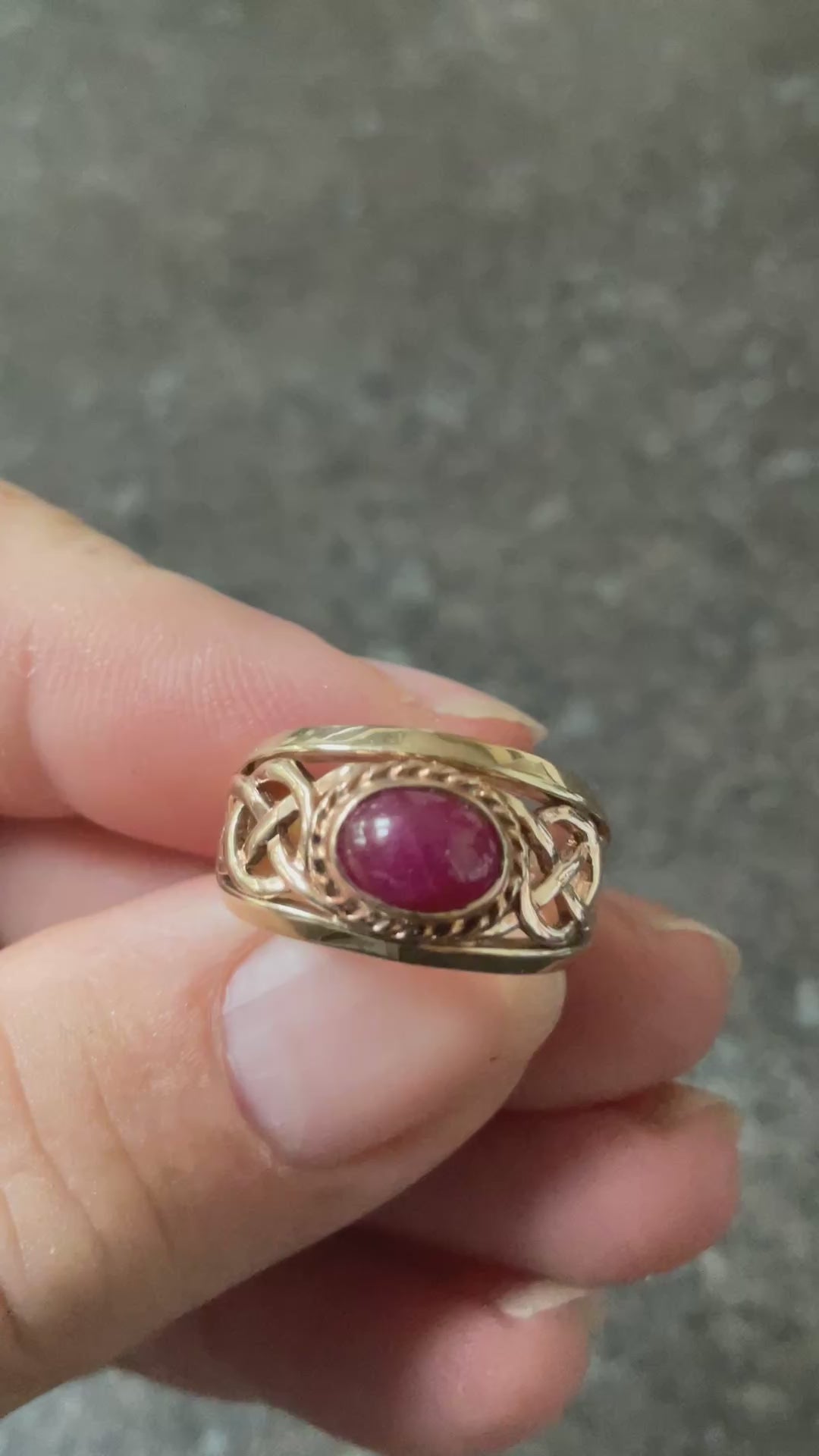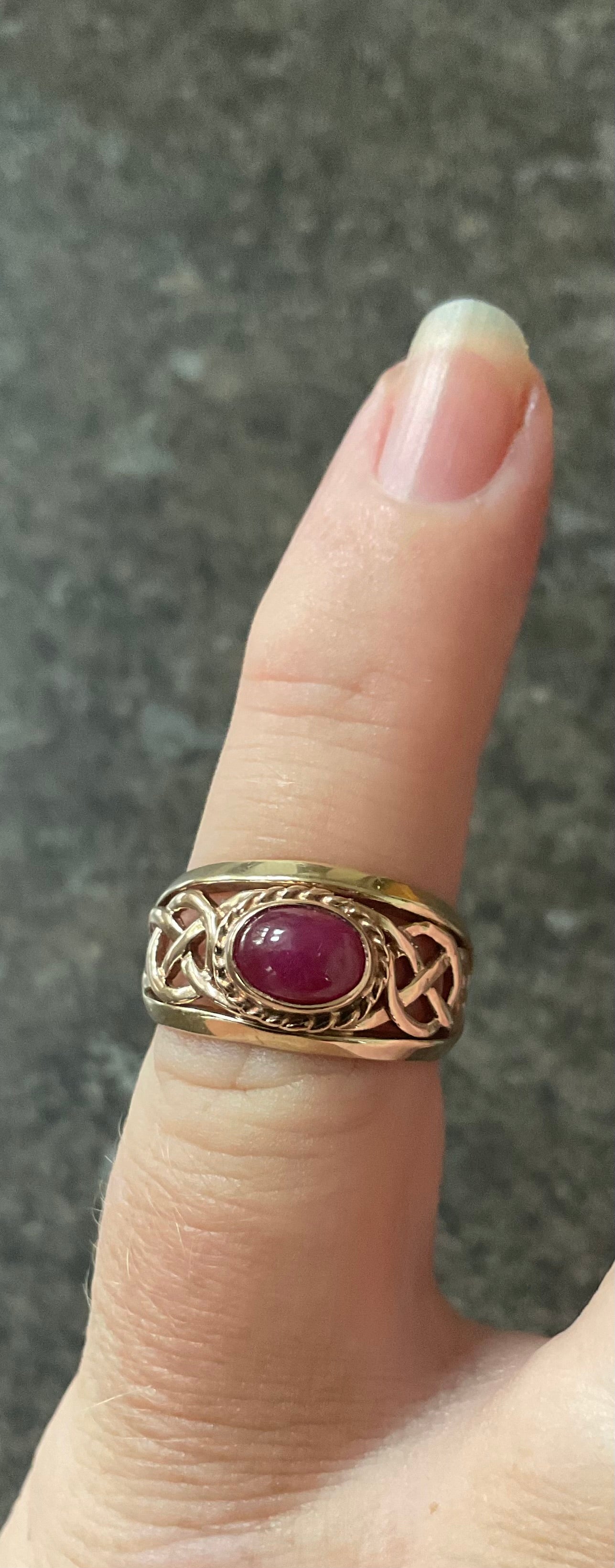 Vintage Clogau Ruby Cabochon St. David’s Celtic band ring size K1/2 yellow and rose gold 1996