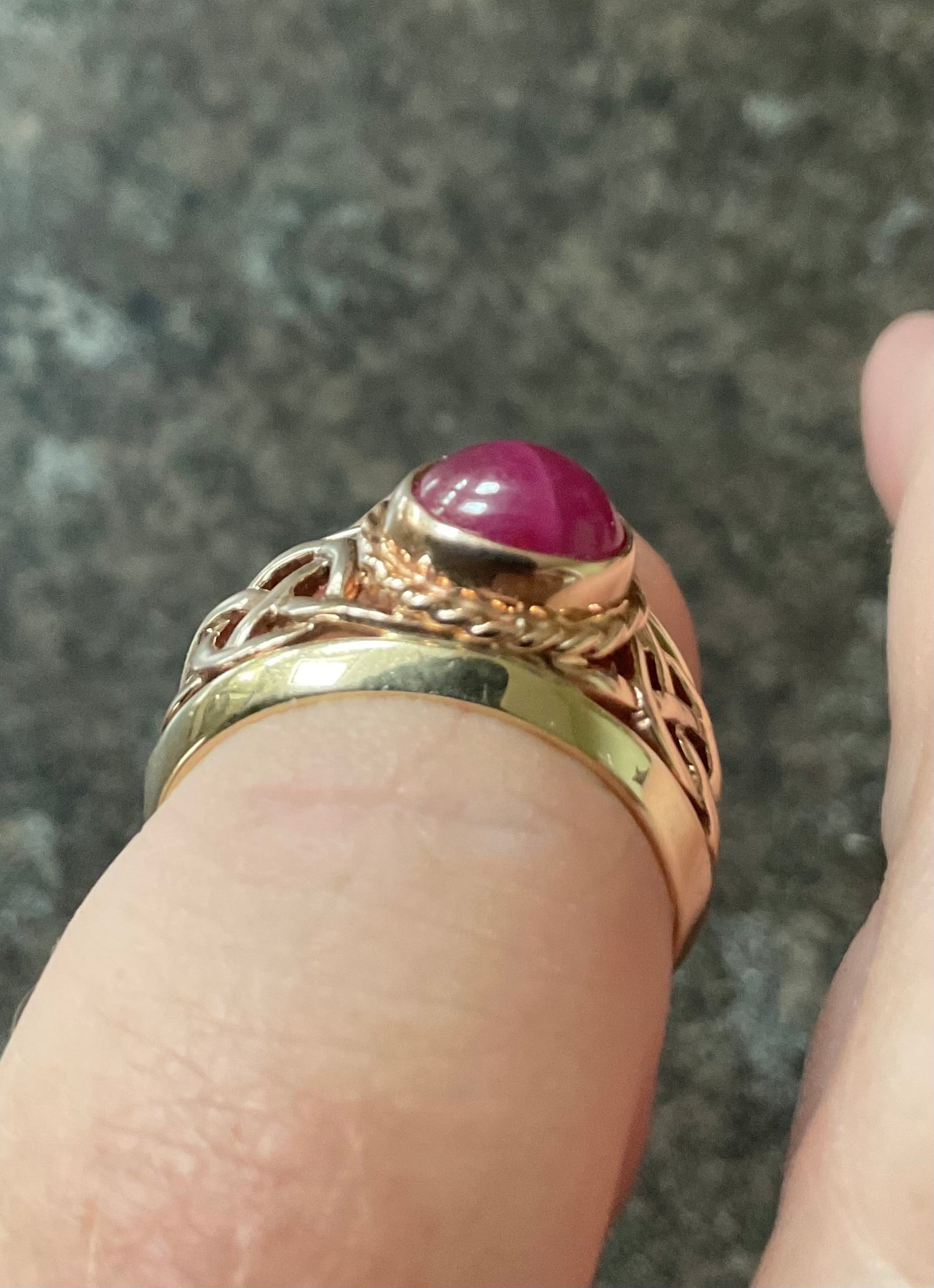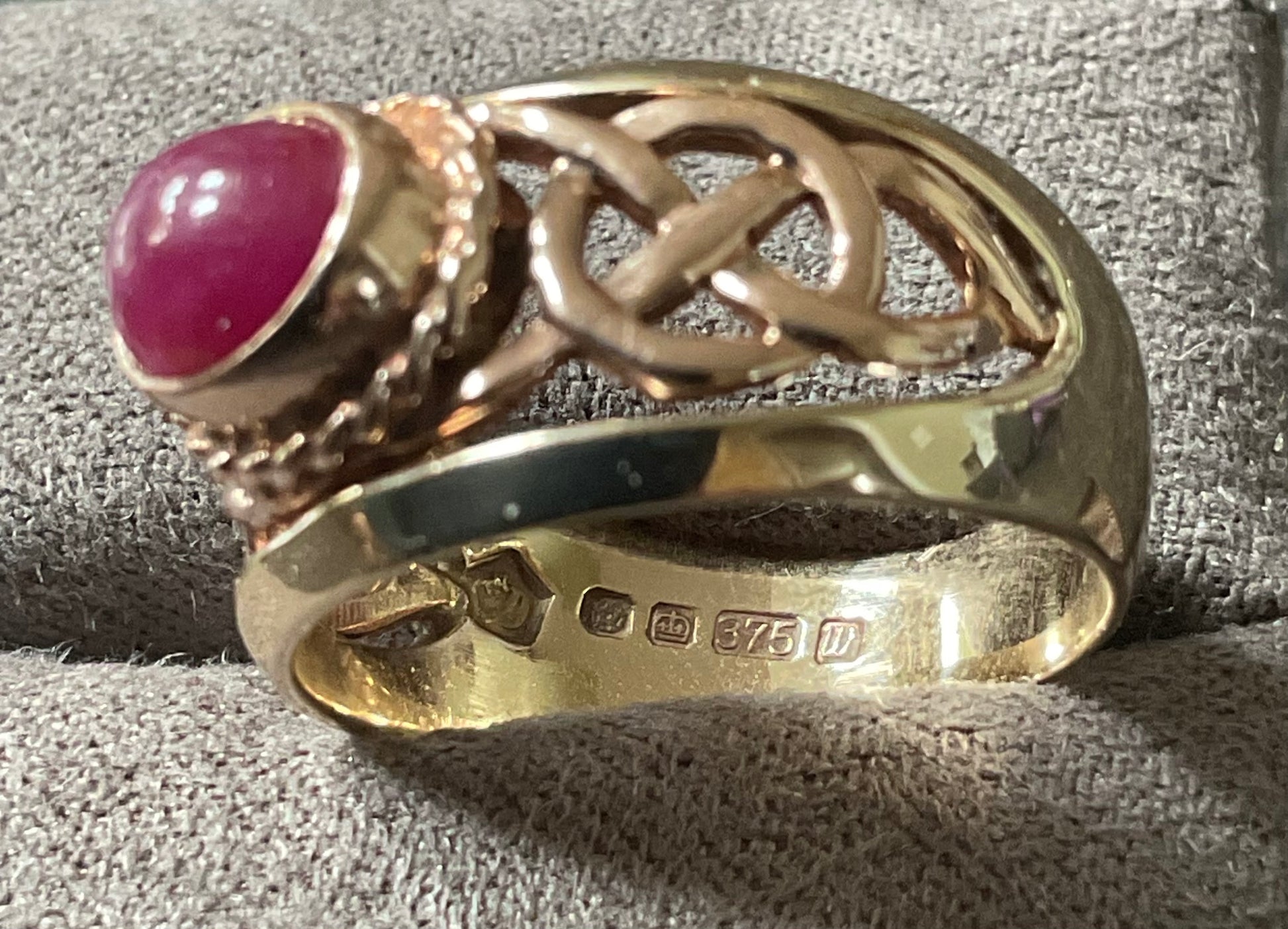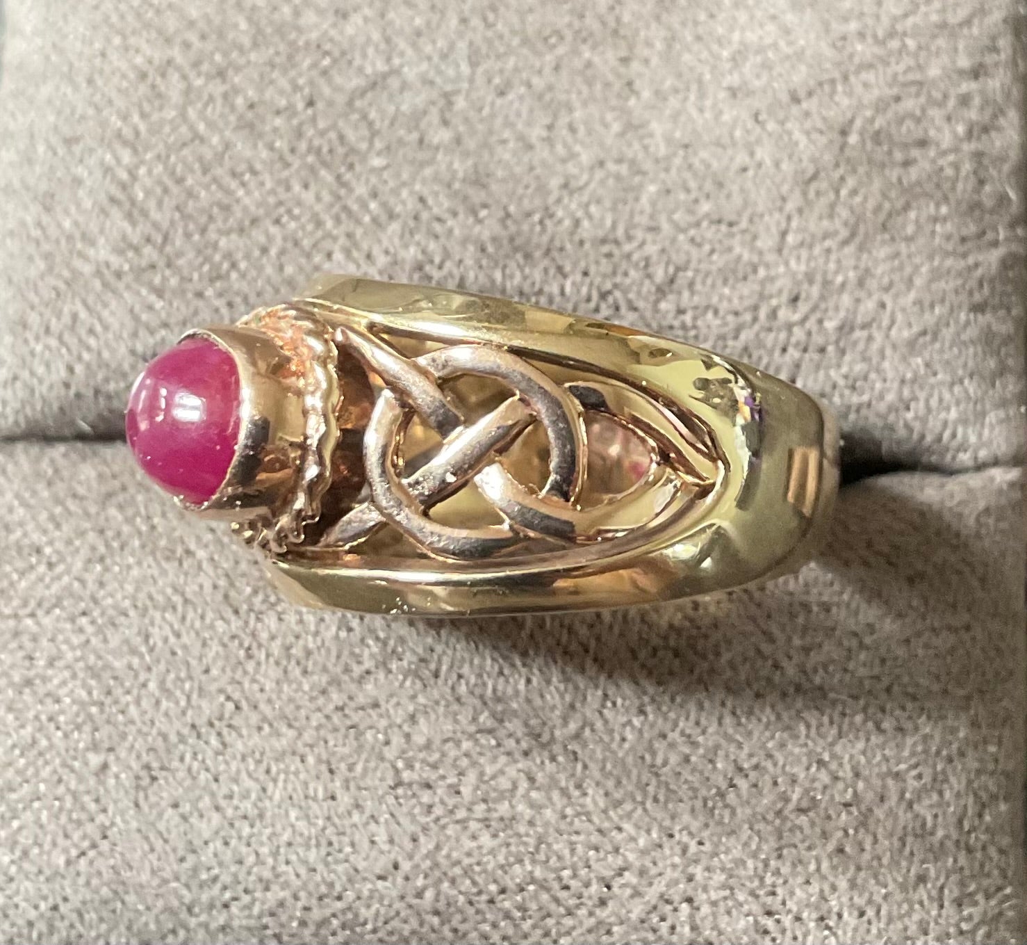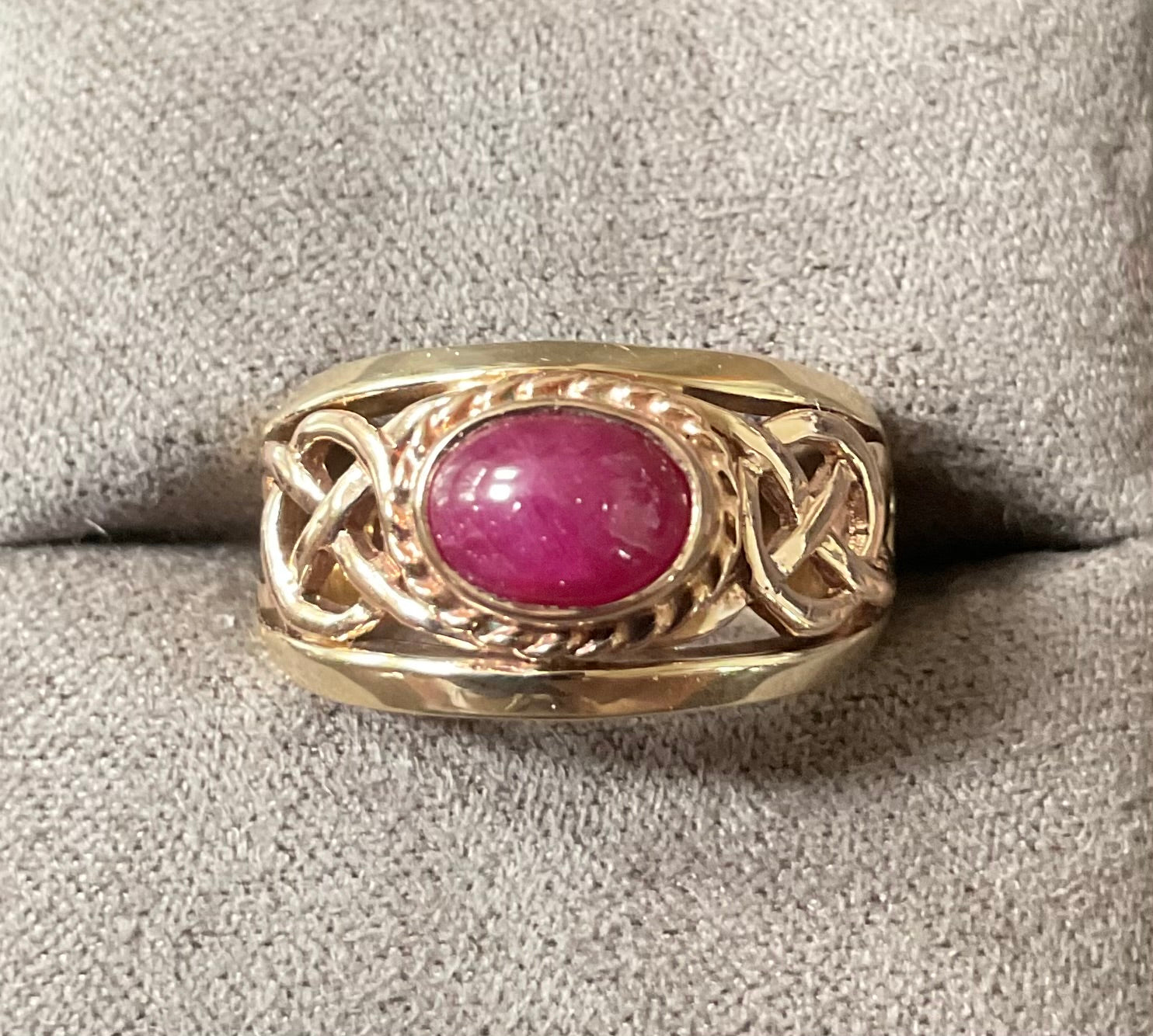 Vintage Clogau Ruby Cabochon St. David’s Celtic band ring size K1/2 yellow and rose gold 1996